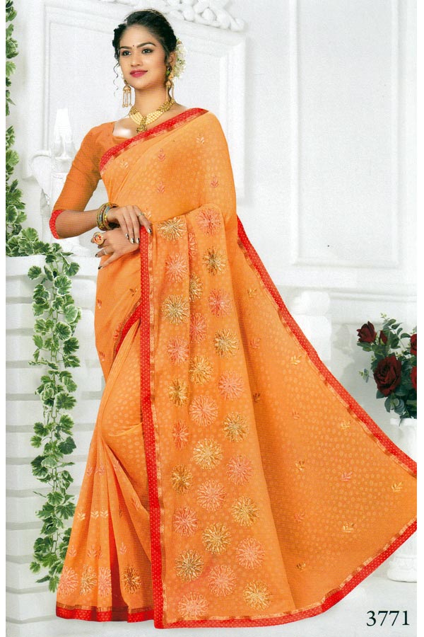 - Saree Color : Orange Color With Red Border