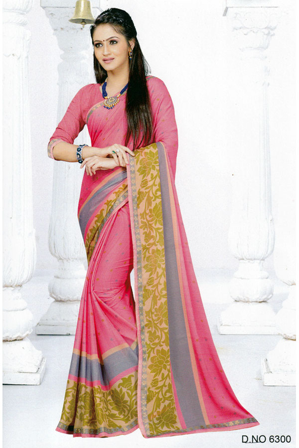 - Saree Color : Pink Color With Olive Green Color Printed Border