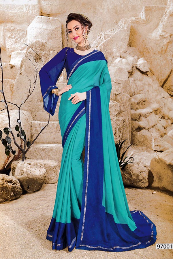 - Saree Color : Peacock Blue Color With Dark Blue Color Printed Border
