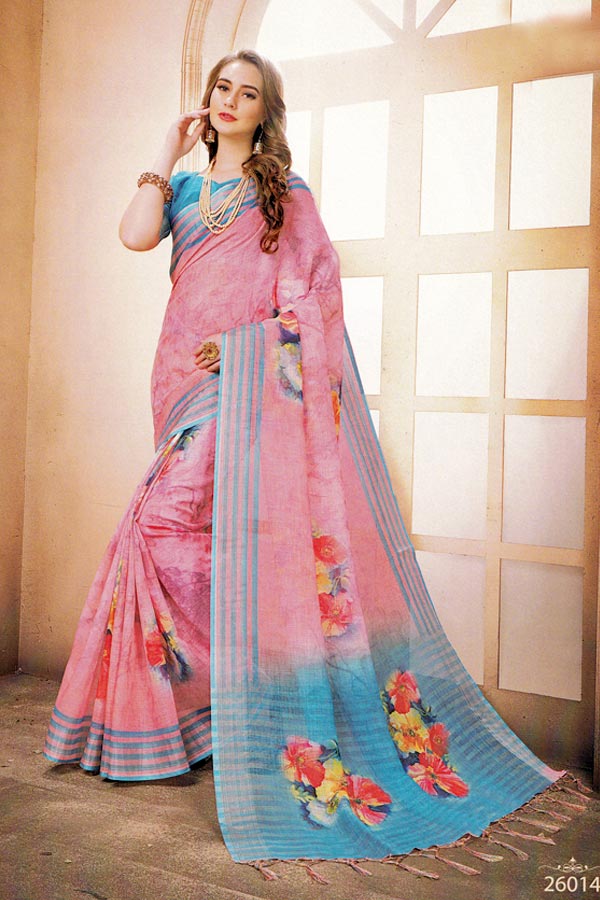 - Saree Color : Pink With Multi Color Floral Design Print