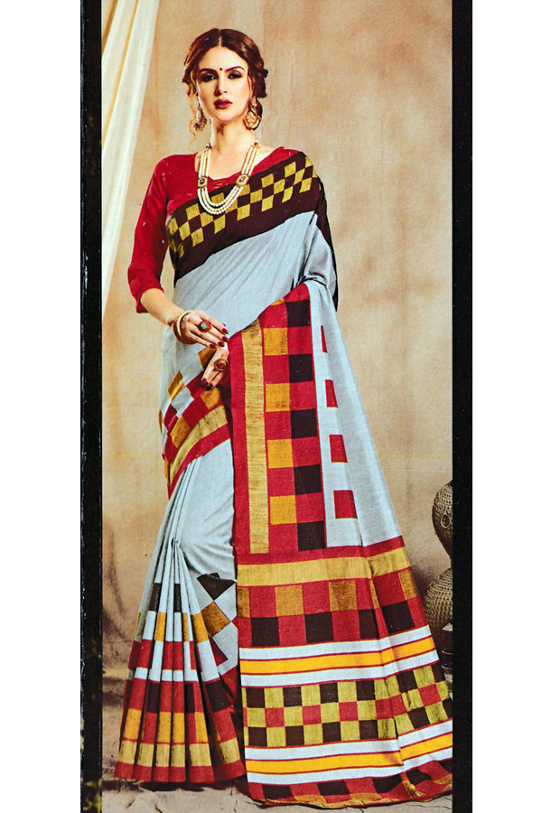 • Saree Color : Grey Color With Multi Color Border